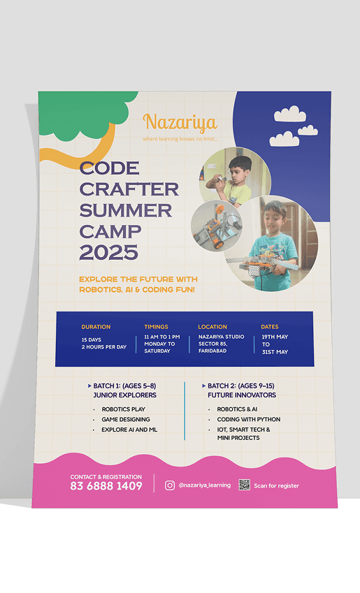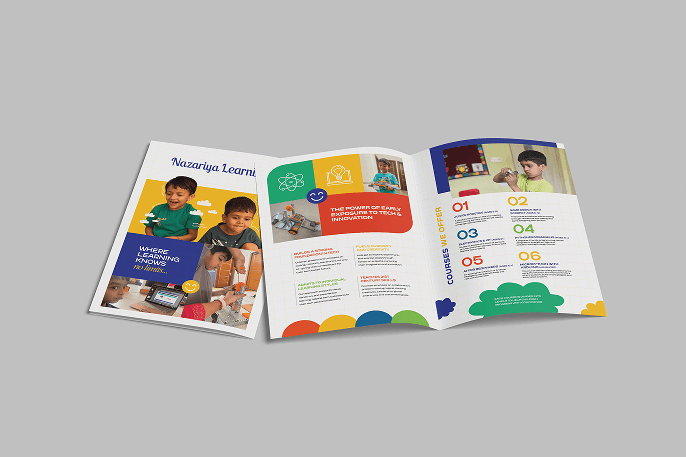 Exhibition-ready brochures and flyers created to present Nazariya Learning’s offerings in a clear, colorful, and inviting way.